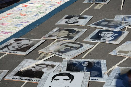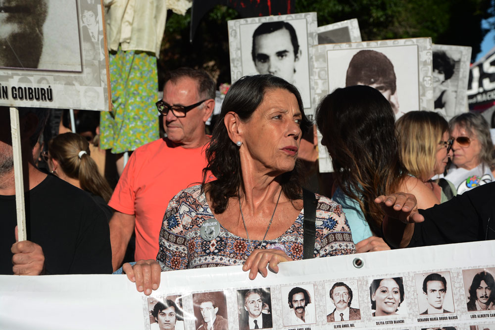 Son las 17:30, casi en punto, y comienza la marcha del Día de la Memoria por la Verdad y la Justicia en Paraná. Tradicionalmente, el frente de la movilización está reservado para la bandera de arrastre de la Asociación de Familiares y Amigos de Detenidos Desaparecidos Entrerrianos y en Entre Ríos (A.F.A.D.E.R.). Se trata de una gran lona blanca que ocupa los tres carriles de calle Carbó y lleva impresa la foto de cada víctima entrerriana de la dictadura. Detrás se ubican quienes se ofrecen a llevar las pancartas que nombran a cada desaparecido/a; más atrás se ordenan gremios, sindicatos, centros de estudiantes, organizaciones sociales y políticas, junto a otras agrupaciones convocadas a marchar.