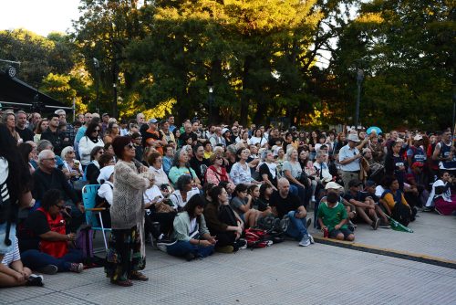 La jornada da paso a un momento de distensión. Sube al escenario la murga local “La de Bolsillo”, que entre canción y canción reclama que “los portadores de oscuridad nos digan dónde están”. Les sigue Anarkústico, que dedica su tema “Las mismas calles” a Isabel Vergara, aún presente en la plaza a las nueve de la noche, quien espera al costado del escenario hasta fundirse en un abrazo con Adrián López, integrante de la banda. Luego llega Apóstol, con una presentación disruptiva: Agucho, solo en escena, canta, baila y deja una consigna breve pero potente: “luche y baile”. Una idea que, con distintas palabras, atraviesa históricamente los espacios de transformación social y política: “endurecerse sin perder la ternura jamás” o “defender la alegría como una trinchera”.