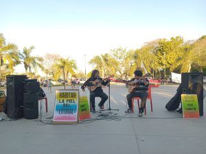 A continuación, la Compañía Artivista de Intervención Territorial invitó a los presentes a participar de una performance en ronda con antifaces y castañuelas que culminó con un abrazo colectivo. Y para finalizar, tocó en vivo la Orquesta Infanto Juvenil “Romina Iturain”.