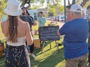 La música de fondo acompañó el encuentro, había quienes aprovechaban para recorrer la feria de emprendedores locales que se extendía alrededor del lugar con productos artesanales, otros se acercaban a leer los carteles con dibujos o explicaciones sobre la Libertad de los Ríos distribuidos en distintos puntos y otros participaban de los talleres.