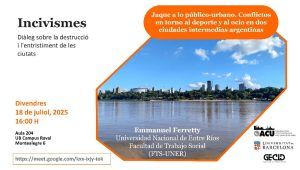 El título de la presentación de Ferretty, realizada en el marco del seminario Diálogos sobre la Destrucción y el Entristecimiento de las Ciudades de la Universidad de Barcelona, fue Jaque a lo público urbano, conflictos en torno al deporte y al ocio en dos ciudades intermedias argentinas. Las dos urbes aludidas en el título refieren a Paraná y La Plata, ámbitos de formación y desarrollo del investigador.