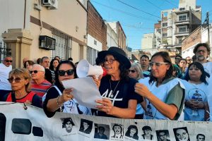 Sobre el asfalto, la lista de oradores prosiguió con Sofía Cáceres Sforza, de Sitradu, el abogado Guillermo Muné, referente de derechos humanos de Santa Fe y Silvina Suárez de AGMER. Luego de la entrega de la nota, se gritó «¡Presente!» por los 30 mil y se desconcentró. En la fachada de la Secretaría de Justicia, quedaron los afiches en blanco y negro con las fotos de Maneiro y Bargana y la frase «Las caras del negacionismo», y la foto de Sabrina Gullino Valenzuela Negro con la interpelación «Rogelio Frigerio ¿Dónde está el Melli?».