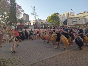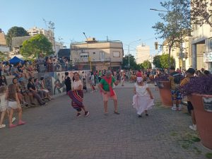 A partir de las 17, los tambores y redoblantes comenzaron a sonar cada vez más fuerte y, al cabo de unos minutos, la calle se convirtió en una celebración a pura emoción y color. Una tras otra, las comparsas y batucas —Puro Swing, Rejunte candombe, Bololó afrosamba, Bateria Imperial, La Barranca, Nn y Rejunte Transfeminista— desfilaron desde la intersección de las calles Nogoyá y San Martín hasta La Paz, donde se encontraba el escenario principal. Los participantes tocaban sus instrumentos con pasión, acompañados por bailarinas que se movían al ritmo de los tambores. A medida que avanzaban el corto tramo, se iban dibujando sonrisas en sus rostros que contagiaban el espíritu comparsero al público expectante.