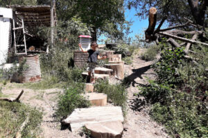 A partir de reconciliarse con la naturaleza, surgen otras cosas. Hay un acto político que hacemos a diario que es comer. Entonces cómo nos alimentamos, con qué nos alimentamos, es una decisión que cuando la hacés consciente acá la empezamos a trabajar desde la agroecología, la permacultura, de buscar maneras de satisfacer nuestras necesidades que sean realmente sustentables y que realmente puedan continuarse en el tiempo. En estas vueltas también podemos decir que no somos ambientalistas. Que somos personas, humanos coherentes, sintientes, inteligentes, que creemos que con toda la tecnología y capacidad que tenemos no podemos estar descuidando así los cursos de agua, no puede estar el arroyo contaminado, y al mismo tiempo teniendo un celular enviando una señal a un satélite para comunicarse con cualquier persona en el mundo. Es como contradictorio que el avance o el progreso avanza mucho, la inteligencia del hombre, pero perdimos la sensibilidad, la conexión con la vida, con un arroyo, con un pájaro y por su puesto con el alimento. La propuesta de la Tribu del Salto es recuperar todo esto. El Aula Verde es como el lugar de la conciencia, donde vamos a aprender a hacer huertas, a hacer compost, a reciclar, a cuidar de la naturaleza, a cuidar los cursos de agua, a entender la importancia de un arroyo y la biodiversidad. También tienen que ver con esparcirse, comenzar a conectarse con el arte, con el paisaje, con el espacio público. Y lo lindo del emprendimiento de poder trabajar con la comida agroecológica y orgánica es también la posibilidad de hacerlo sustentable. Lo económico no está desconectado de lo ambiental y lo social. Si no están integradas, están incompletas. No podemos cuidar el ambiente si no podemos satisfacer nuestras necesidades y hacerlo a costa de nosotros o destruyendo la naturaleza. Estamos integrados.