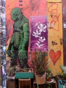 En ese marco, de por sí llamativo, lo más pregnante para la percepción humana es el arte estridente que cubre las calles. La amplitud de la vista no alcanza para abarcar los murales que se suceden indefinidamente por las paredes y recovecos de ese pedazo intrincado de la ciudad. Las pinturas callejeras no dejan rincón sin cubrir y los colores fuertes de los graffitis conmueven la sensibilidad del cualquier caminante.
